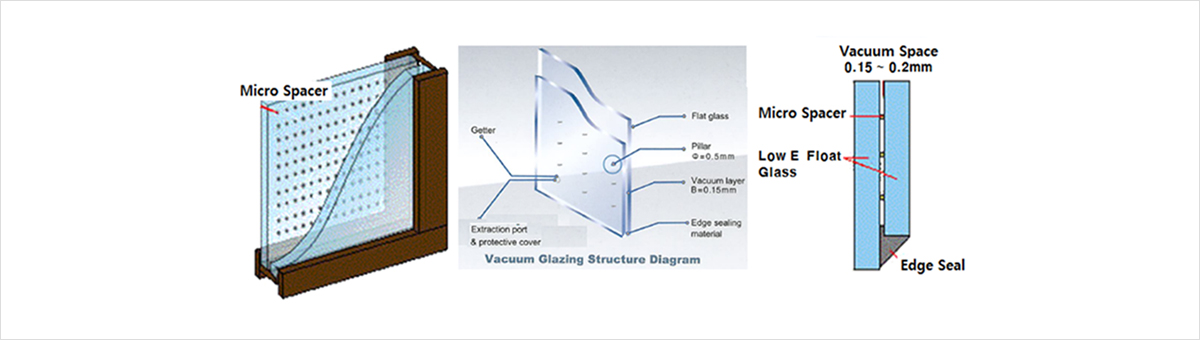 A vacuum provides excellent thermal efficiency because if the pressure is low enough, it will eliminate the conductive and convective heat exchange between the two panes of glass. In a standard double-glazed unit with a Low-E coating, the conduction/convection component can result in 70% of the heat lost; so eliminating this loss is significant. As will be described in more detail below, the radiative heat loss can then be reduced using a Low-E coating inside the VIG, producing an even lower U-factor. Due to the efficiency of a vacuum in reducing heat loss, it is not necessary to have a large distance between the two panes of glass the typical distance is 0.2 mm.